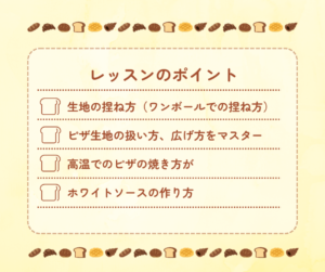 中級レッスンの一番初めのレッスンでは、もちもちピザです。