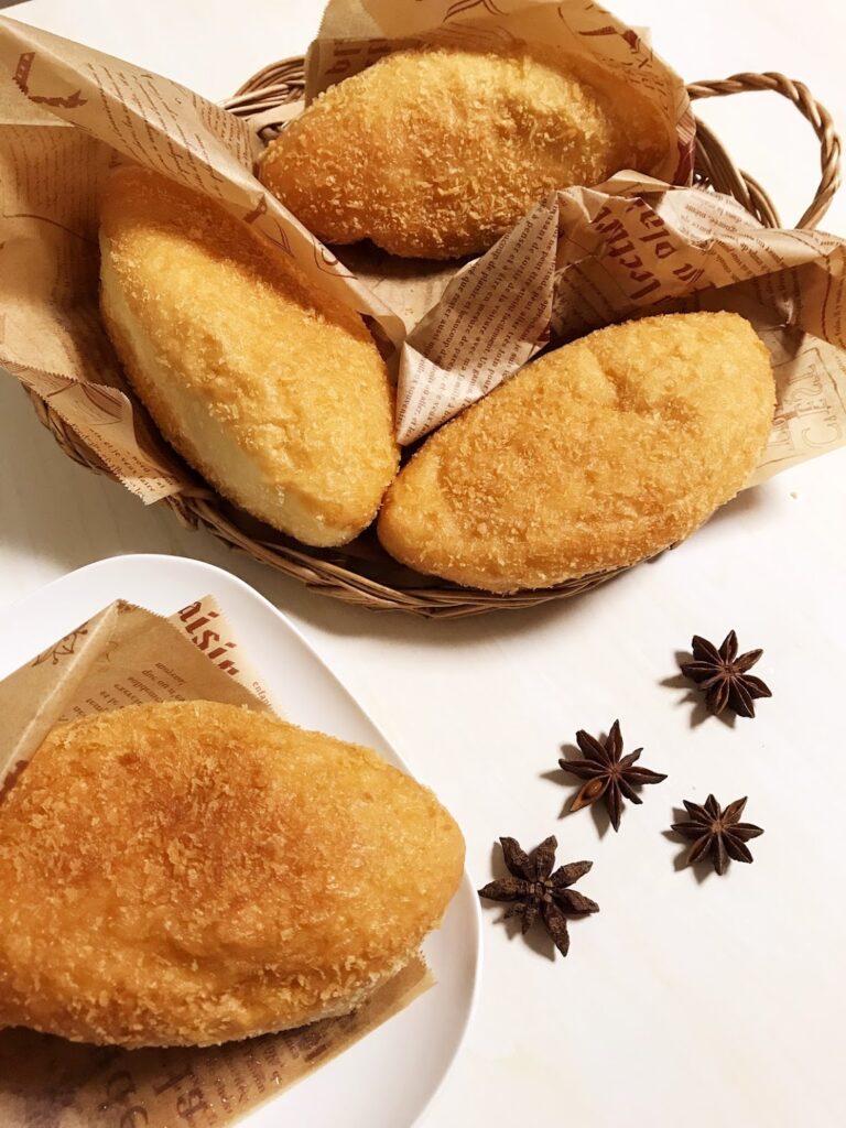 当時、どちらも洋食の人気メニューだったカツレツとカレーライスをヒントに、汁気の少ない固めに作ったカレーフィリングをパン生地に詰め、カツレツのように表面にパン粉をまぶしてあげたのが始まりだと言われています。