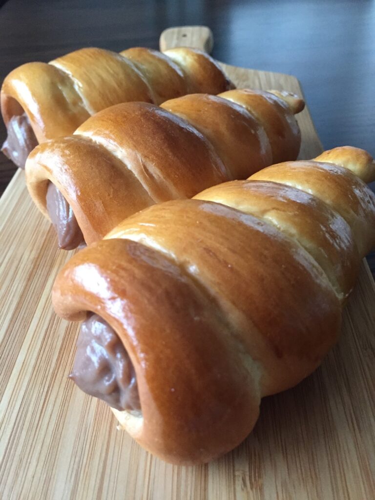 こちらのチョココルネのチョコクリームは、電子レンジで材料を温めながらカスタードクリームを作っていくのですが、そのクリームが温かいうちに細かく刻んだチョコレートを加え、風味豊かなチョコクリームに仕上げます。
